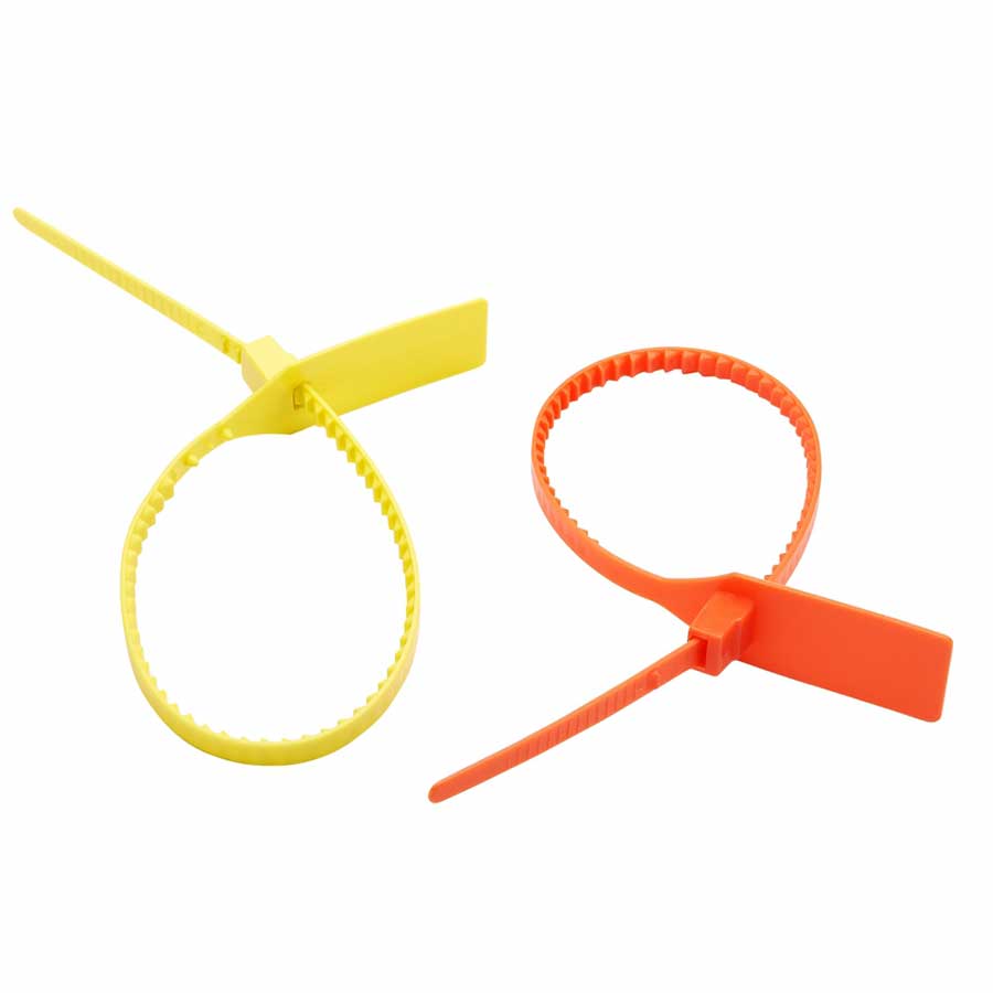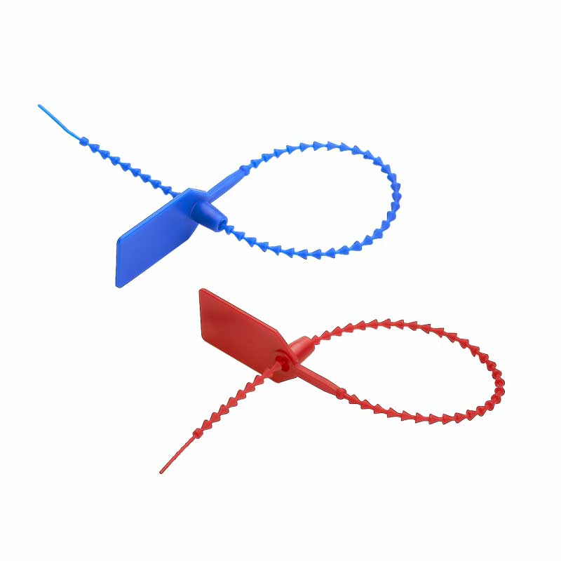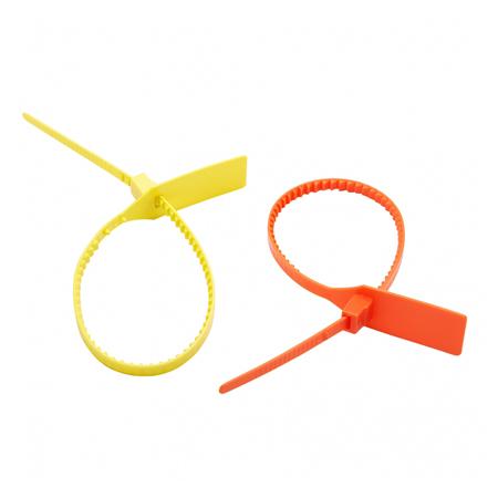 塑料封条上的锯齿可以与塑料口里面的弹性塑料扣密合,能起到十分牢固的作用,广泛适用于各种集装箱, 卡车,门等。