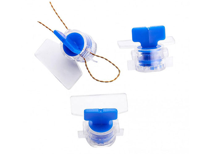 仪表封条由塑料锁体和金属丝组成。该款仪表封条使用时需要将金属丝两端穿过锁体,金属丝使用电镀钢丝绳、不锈钢丝绳及其他材质都可以。