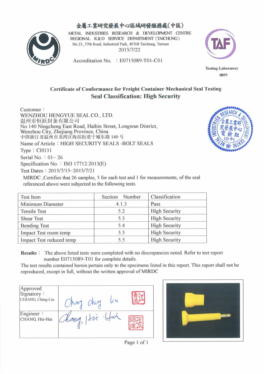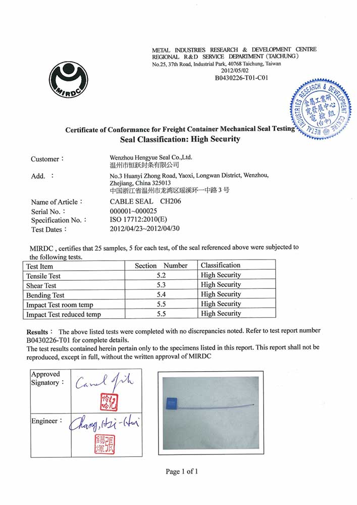温州市恒跃封条有限公司专业致力于研发及生产安全封条,目前已研制、开发了高保封条,钢丝封条,塑料封条,铁皮封条,挂锁封条,仪表封条和大铁封条7个系列100款的封条。产品广泛应用于海、陆、空运输行业以及邮政、超市、银行、石油、安保、水利、电力等相关领域。