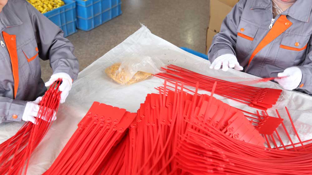 下面展示的是我们加工封条的流程,在加工完成之后,我们都会对每个封条进行质量检测,保证产品做到不可循环使用。